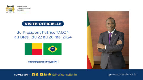 Le Chef de l'État, Monsieur Patrice TALON, en compagnie d'une délégation effectuera une visite officielle au Brésil du 22 au 26 mai 2024. Pendant 03 jours, son séjour se déroulera