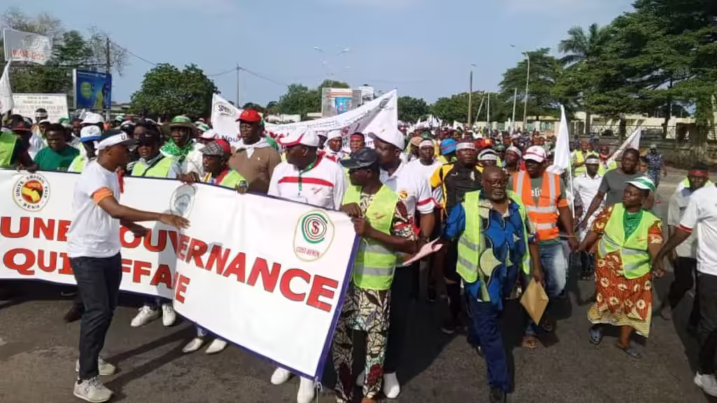 Ce samedi 11 mai 2024, la marche pacifique organisée par les centrales et confédérations syndicales du Bénin a finalement pu se dérouler sans entraves, marquant ainsi une victoire pour les travailleurs. Contrairement aux précédentes tentatives du 27 avril et du 1er mai, la police n’a pas perturbé l’itinéraire des manifestants, mais les a au contraire encadrés pour garantir le bon déroulement de la manifestation.
