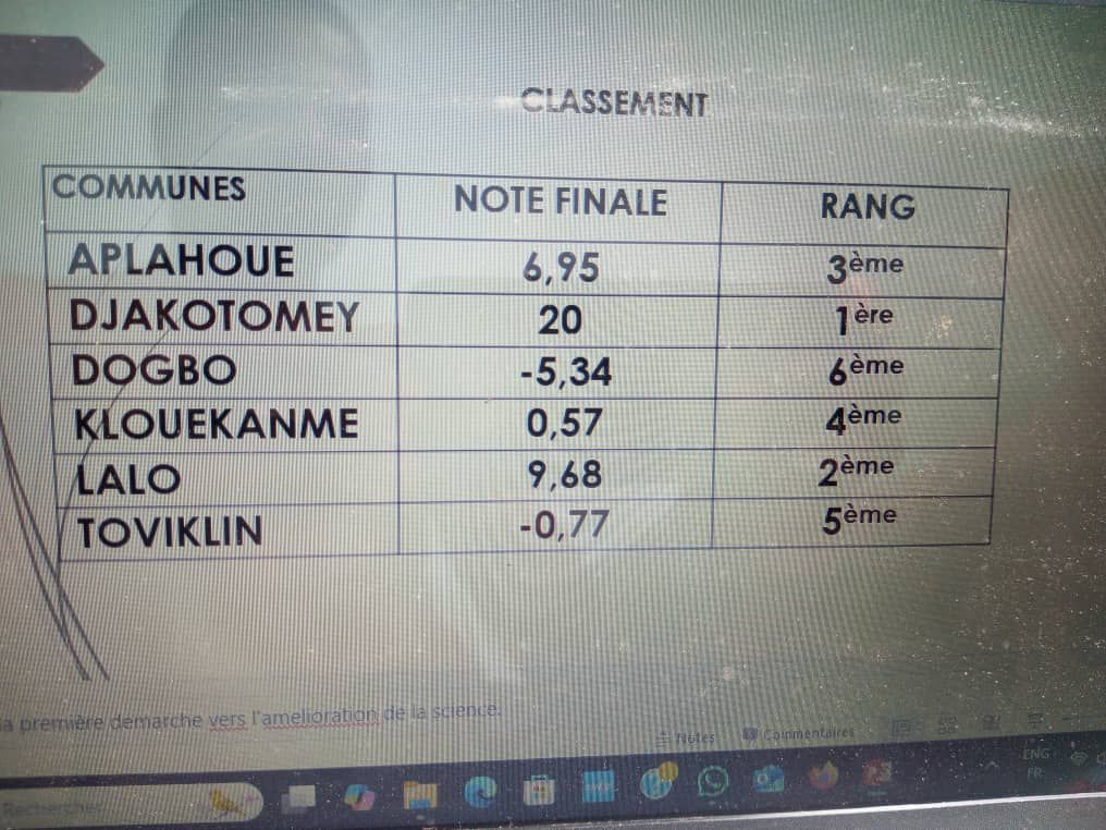 « Ce résultat est le fruit d’un engagement collectif pour faire de notre commune un cadre de vie propre et attrayant », a souligné le maire William T. Fangbédji, qui appelle à poursuivre les efforts citoyens.