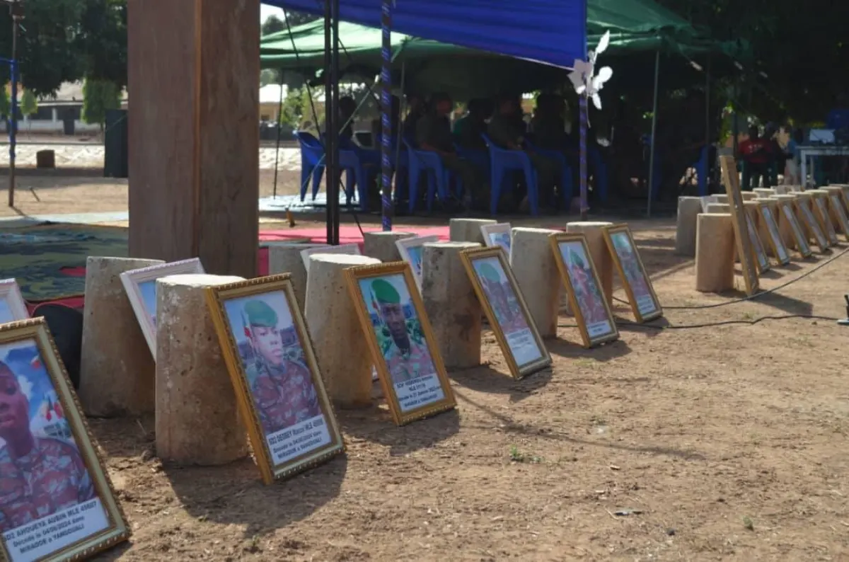 La cérémonie a réuni plusieurs cultes. Après le camp militaire de Kandi, le 6ème Bataillon Interarmes de Natitingou a, à son tour, connu un rassemblement similaire. Près d’une dizaine de photos de soldats décédés étaient disposées, et chaque nom a été prononcé un par un pour souligner leur sacrifice. Ce moment émouvant a été marqué par la présence du Ministre de la Défense nationale, Fortunet Alain NOUATIN, accompagné de personnalités militaires de haut rang, dont le Général de Brigade Abdoul Backi Sanni BACHABI, le Chef d’État-Major de l’Armée de Terre, Général de division Abou ISSA, ainsi que des autorités locales telles que le Préfet de l’Atacora et le Maire de Natitingou.