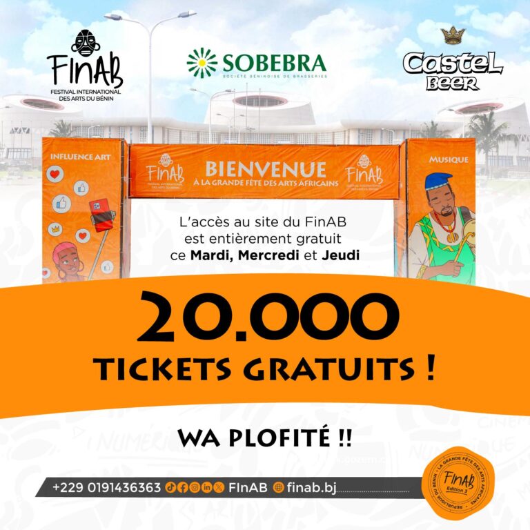 Depuis vendredi dernier, le Bénin vit au rythme de l’un de ses plus grands événements culturels : le Festival International des Arts du Bénin (FInAB). Ce festival est désormais un véritable moteur de réflexion autour de l’affirmation de l’identité culturelle et de l’entrepreneuriat artistique. Et pour offrir une chance au plus grand nombre de participer à cette grande célébration de la culture, le promoteur Ulrich Adjovi, reconnu pour sa générosité, a décidé de mettre en place une initiative exceptionnelle.